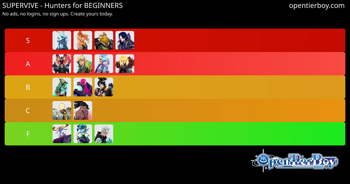 These tier lists reflect our subjective opinions based personal experience while playing SUPERVIVE. The meta is still developing, and balance changes may affect hunter performance.